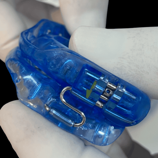 O aparelho intraoral atua reposicionando a mandíbula durante o sono, mantendo as vias aéreas abertas e reduzindo episódios de ronco e apneia